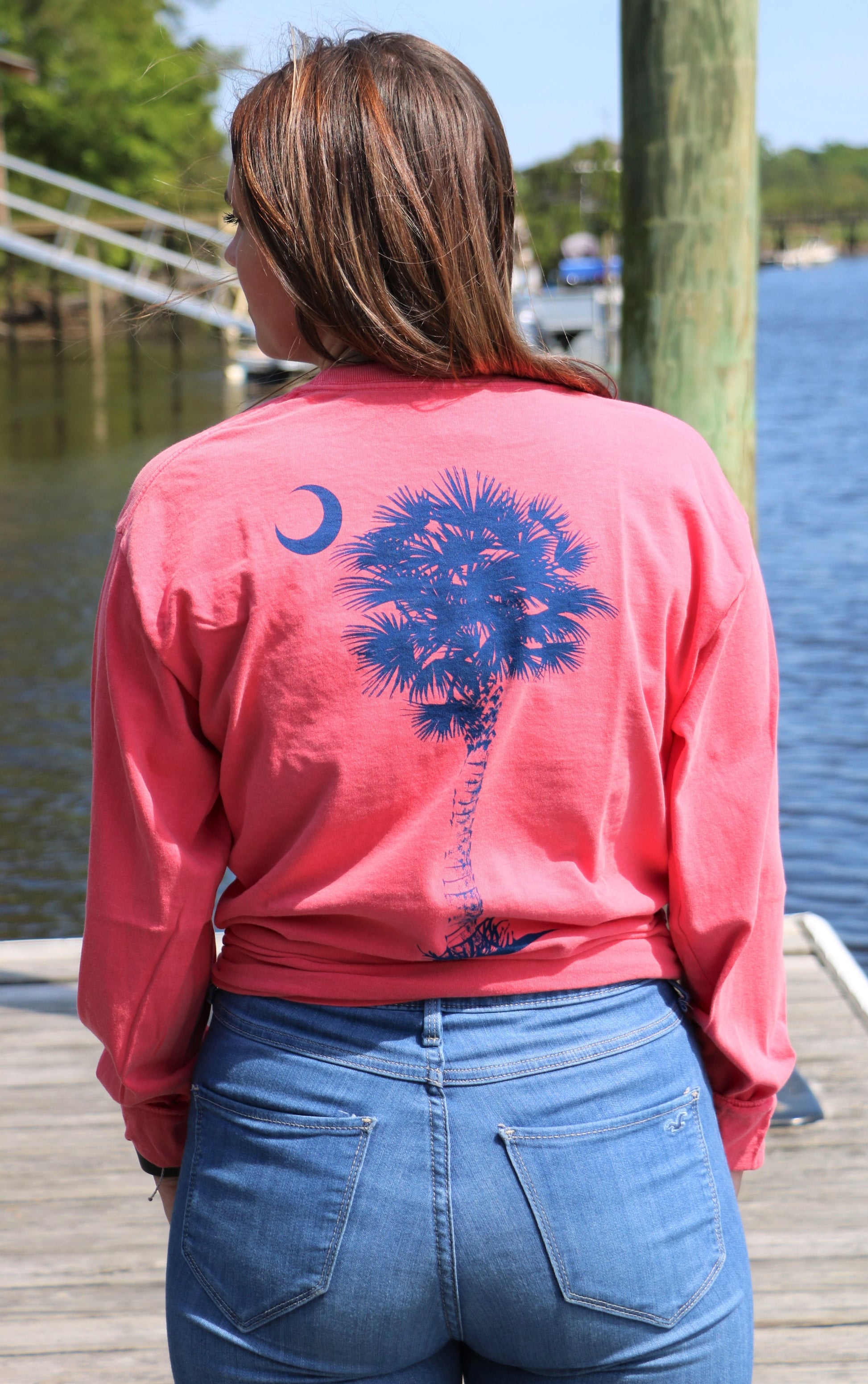 Printed on a Comfort Colors long sleeve with a left chest and full back print.