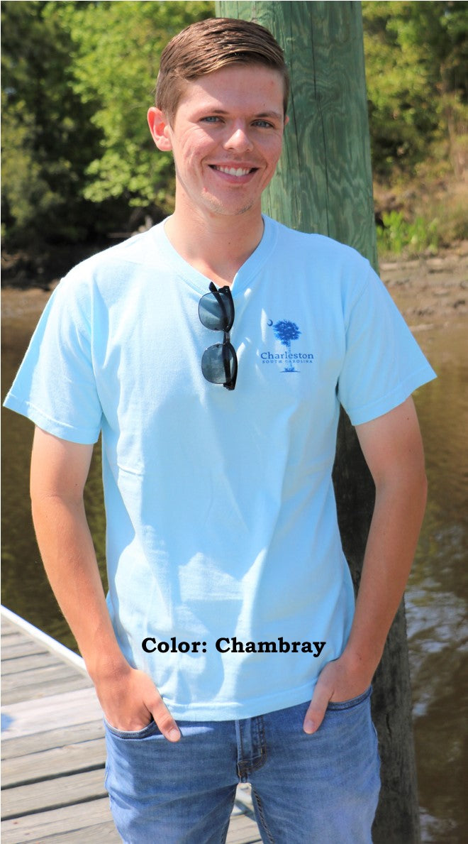 Printed on a Comfort Colors Tee with a left chest and full back print.