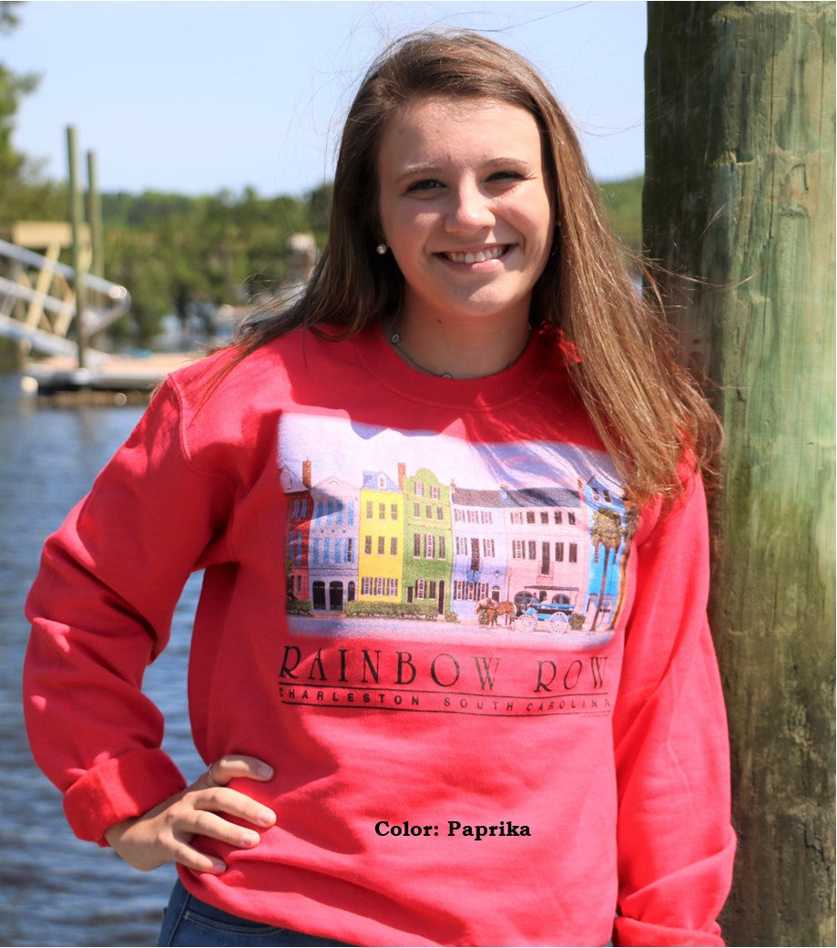 Historically known, Rainbow Row, printed on the front of Gildan Sweatshirt
