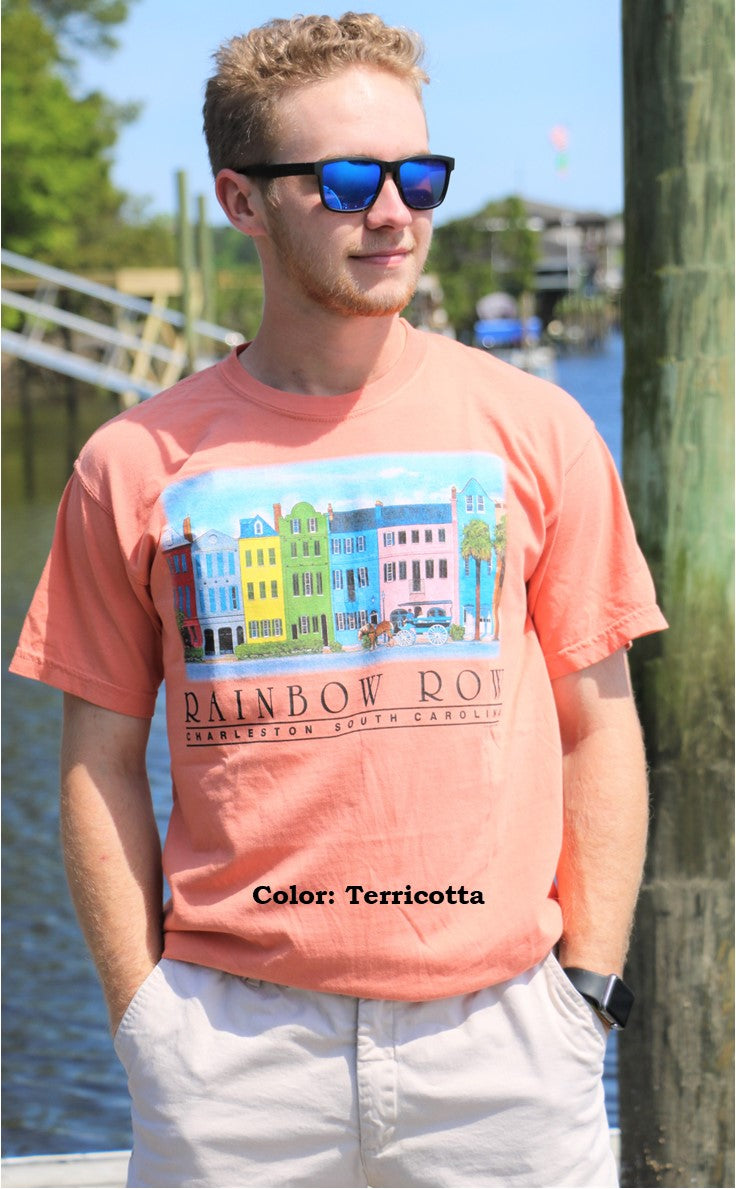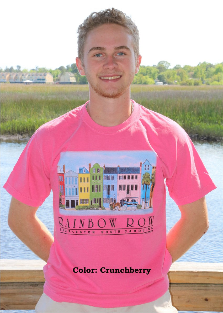 Historically known, Rainbow Row, printed on the front of comfort colors tees.